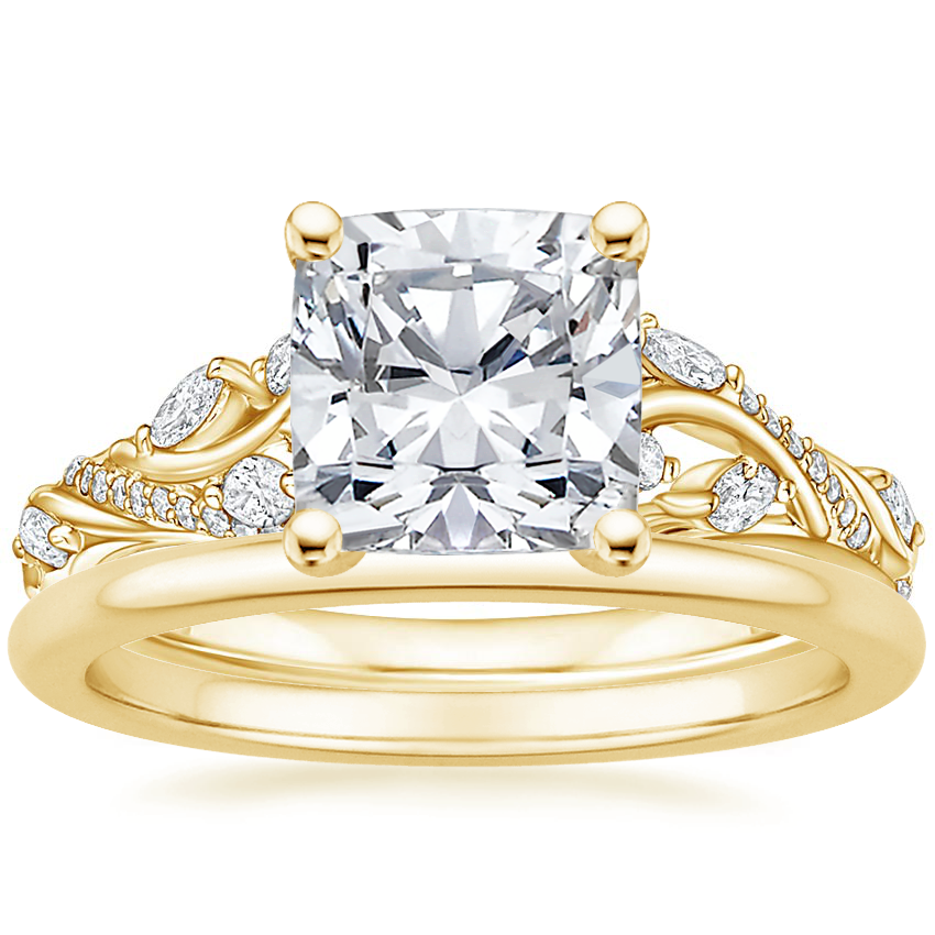 18K Yellow Gold Begonia Vine Diamond Ring (1/2 ct. tw.) with Petite Comfort Fit Wedding Ring