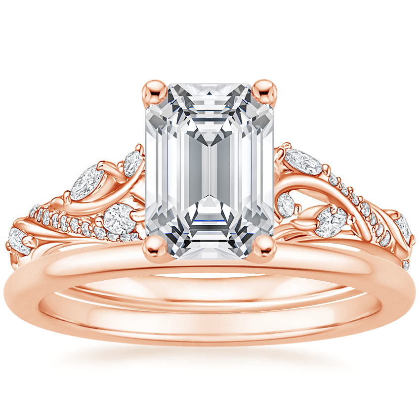 14K Rose Gold Begonia Vine Diamond Ring (1/2 ct. tw.) with Petite Comfort Fit Wedding Ring