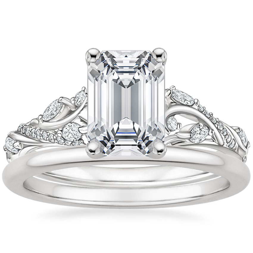 18K White Gold Begonia Vine Diamond Ring (1/2 ct. tw.) with Petite Comfort Fit Wedding Ring
