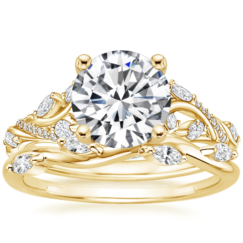 18K Yellow Gold Begonia Vine Diamond Ring (1/2 ct. tw.) with Winding Willow Diamond Ring