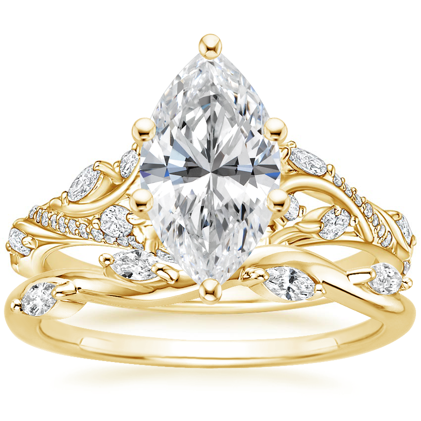 18K Yellow Gold Begonia Vine Lab Diamond Ring (1/2 ct. tw.) with Winding Willow Diamond Ring with 0.98 Carat Marquise Lab Grown Diamond
