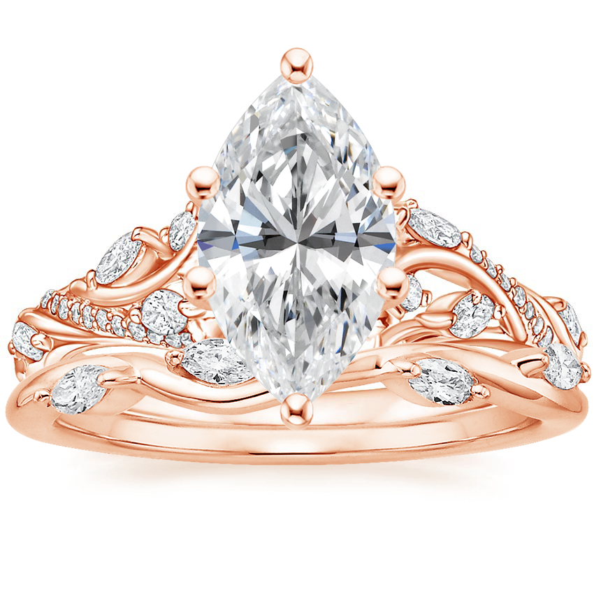 14K Rose Gold Begonia Vine Lab Diamond Ring (1/2 ct. tw.) with Winding Willow Diamond Ring with 0.98 Carat Marquise Lab Grown Diamond