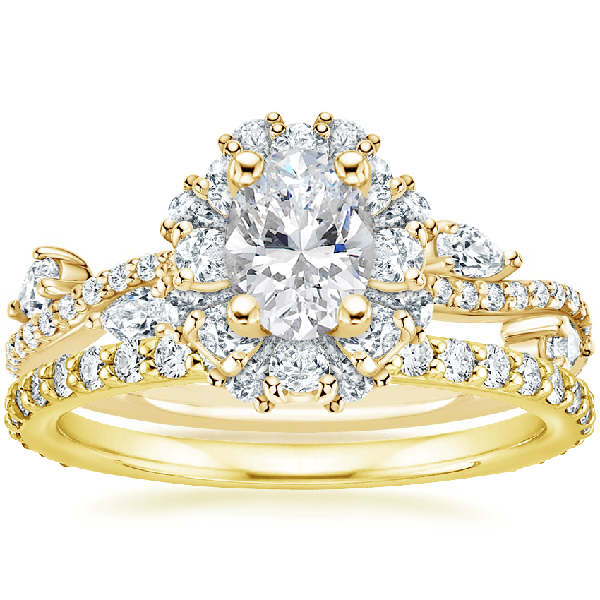 18K Yellow Gold Blooming Rose Diamond Ring (1 ct. tw.) with Luxe Petite Shared Prong Diamond Ring (3/8 ct. tw.)