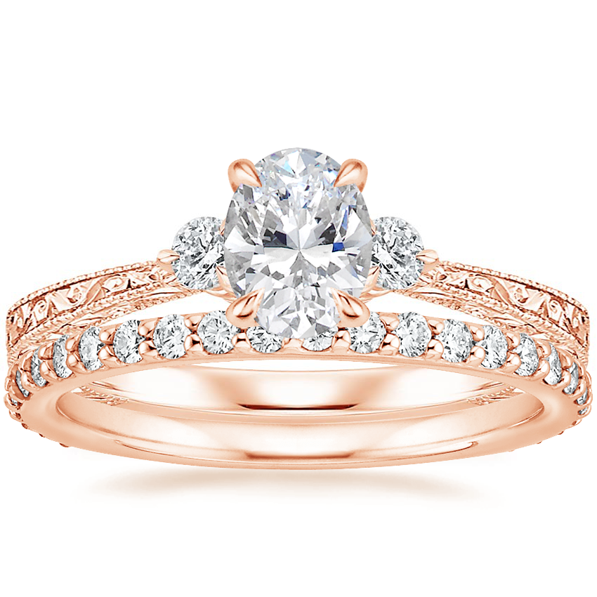 14K Rose Gold Bristol Diamond Ring with Luxe Petite Shared Prong Diamond Ring (3/8 ct. tw.)