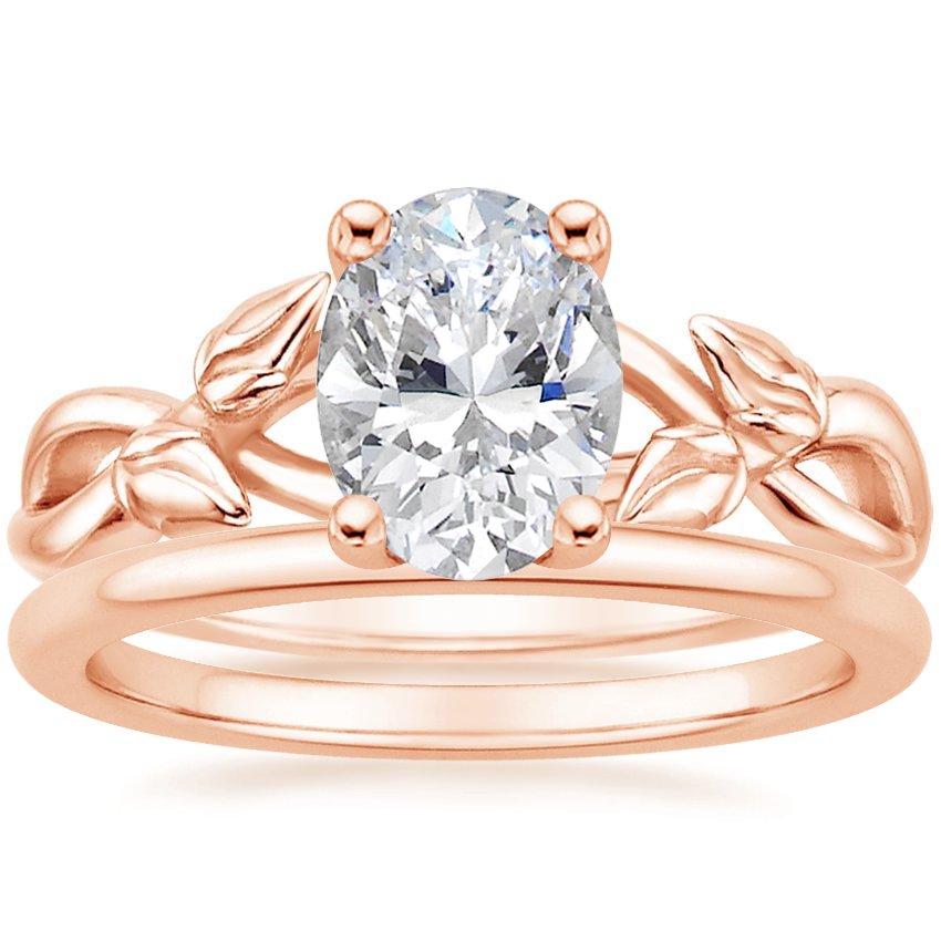 14K Rose Gold Budding Willow Ring with Petite Comfort Fit Wedding Ring