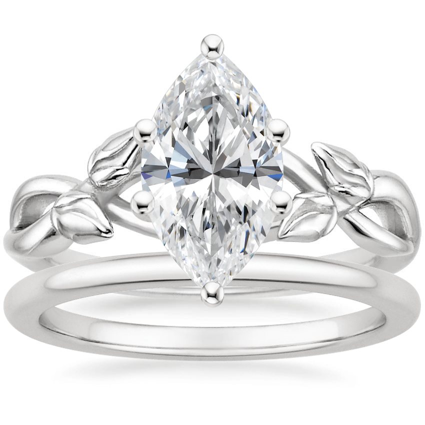 18K White Gold Budding Willow Ring with Petite Comfort Fit Wedding Ring