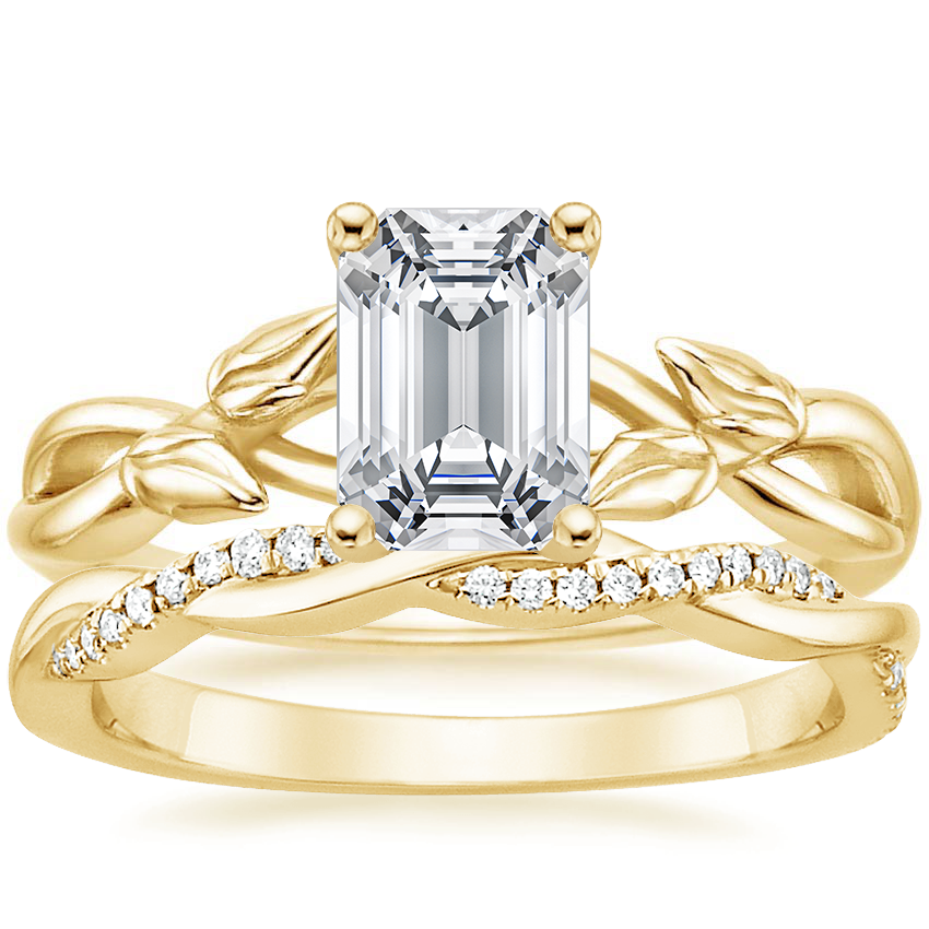18K Yellow Gold Budding Willow Ring with Petite Twisted Vine Diamond Ring (1/8 ct. tw.)