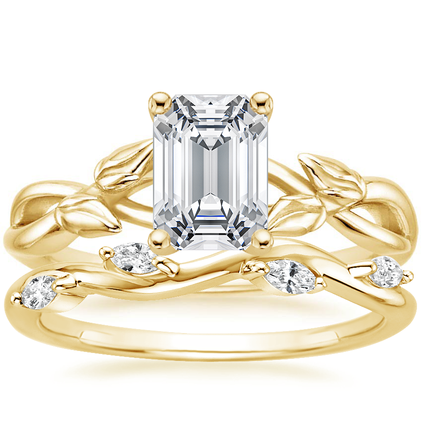 18K Yellow Gold Budding Willow Ring with Winding Willow Diamond Ring (1/8 ct. tw.)