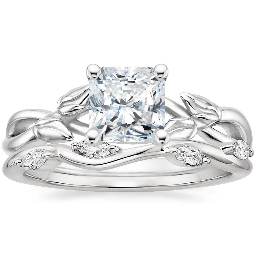 This was the winner out of the options I gave my fiancé! I am very nature-oriented, and my fiancé liked the metal work of this band. Lab-grown diamond (1.46). I love the slim, intricate band with a bigger stone. < 3 And great job to Brilliant Earth for providing a free re-sizing since he had to buy this online.