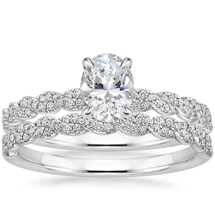 This beautiful nature-inspired bridal set features delicate strands of scalloped pavé diamonds twisting together to create a stunning look. Diamond accents along the gallery wires add extra sparkle at every angle. (1/5 total carat weight). ... Read More