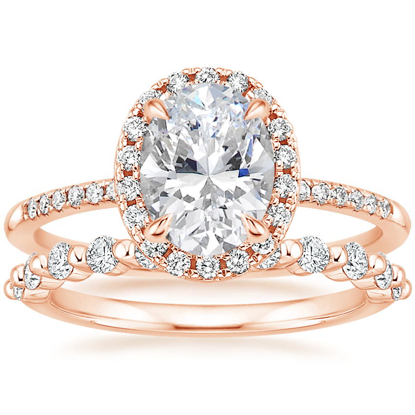 14K Rose Gold Cambria Lab Diamond Ring with Marseille Diamond Ring (1/3 ct. tw.) with 2.9 Carat Oval Lab Grown Diamond