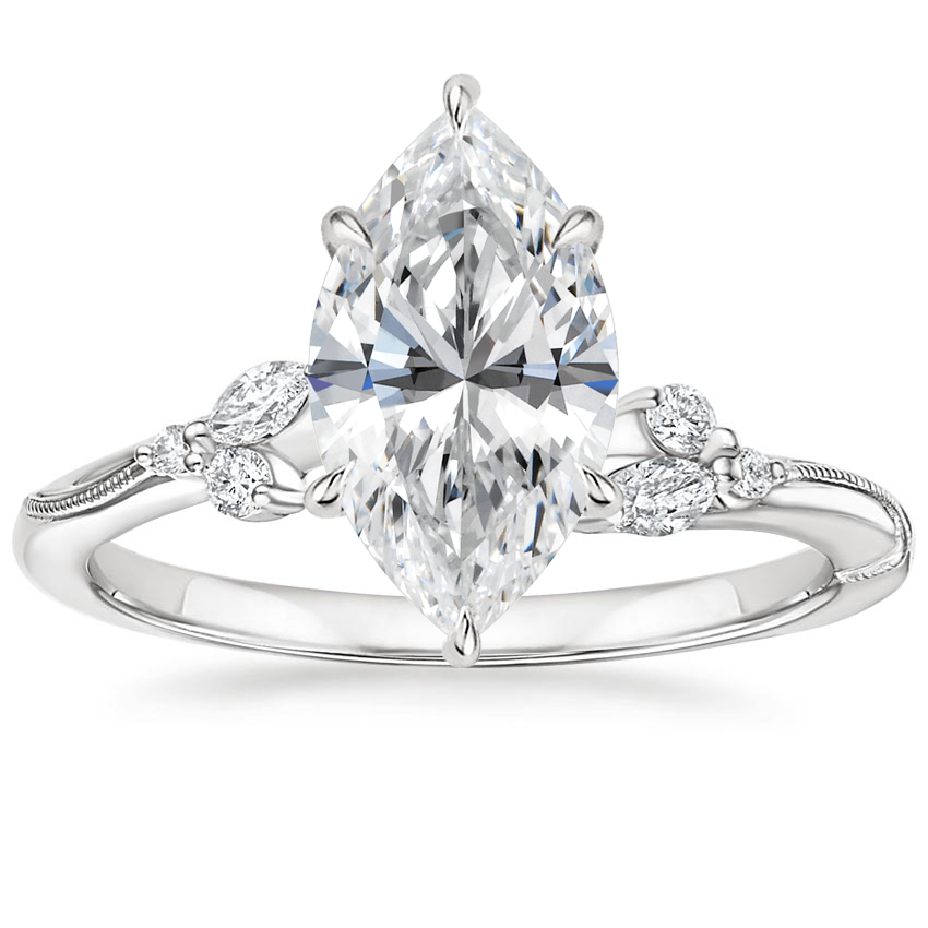 My ring blew me away, the milgrain details are beautiful and the leaf diamonds on the sides add just the right amount of accent bling. My fiance did an amazing job, this ring is STUNNING!