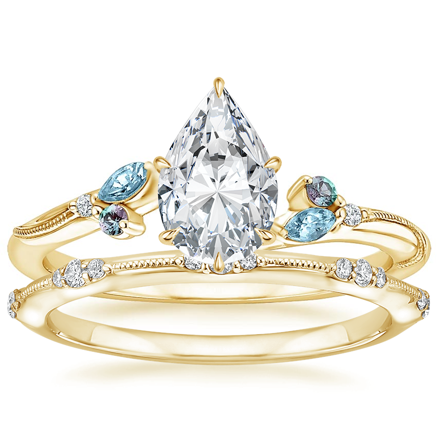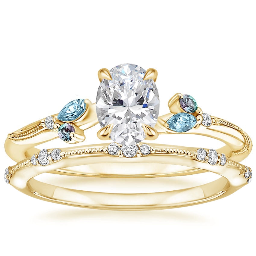 18K Yellow Gold Camellia Indigo Milgrain Ring with Alena Diamond Ring