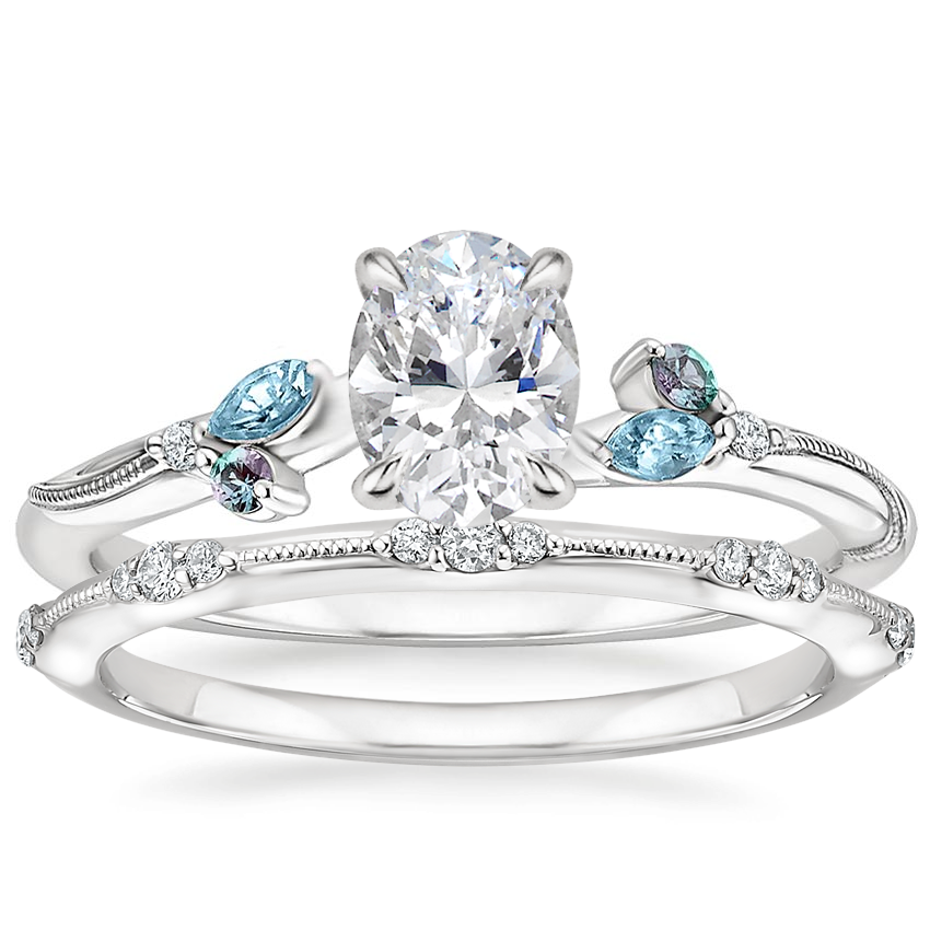 18K White Gold Camellia Indigo Milgrain Ring with Alena Diamond Ring
