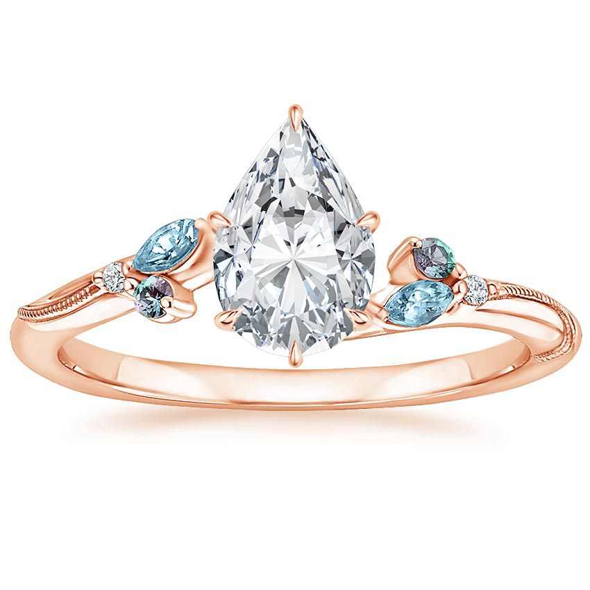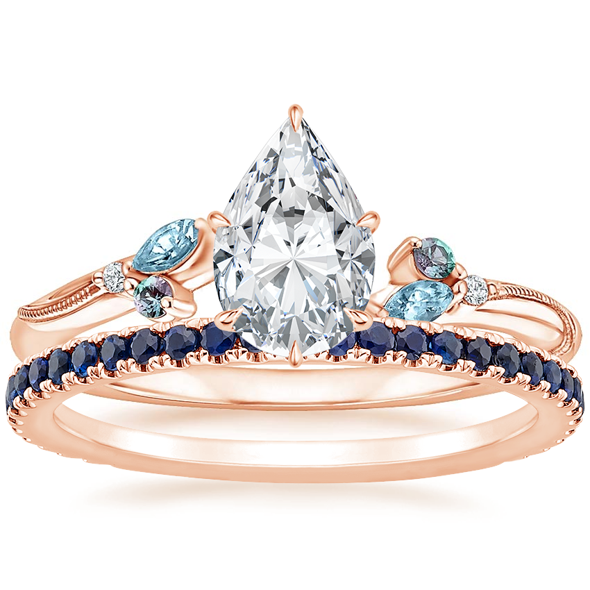 14K Rose Gold Camellia Indigo Milgrain Ring with Luxe Ballad Sapphire Ring