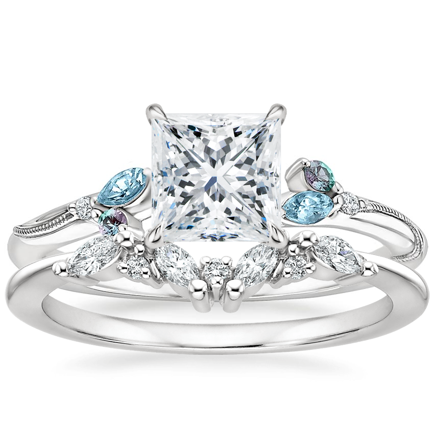 Platinum Camellia Indigo Milgrain Ring with Yvette Diamond Ring