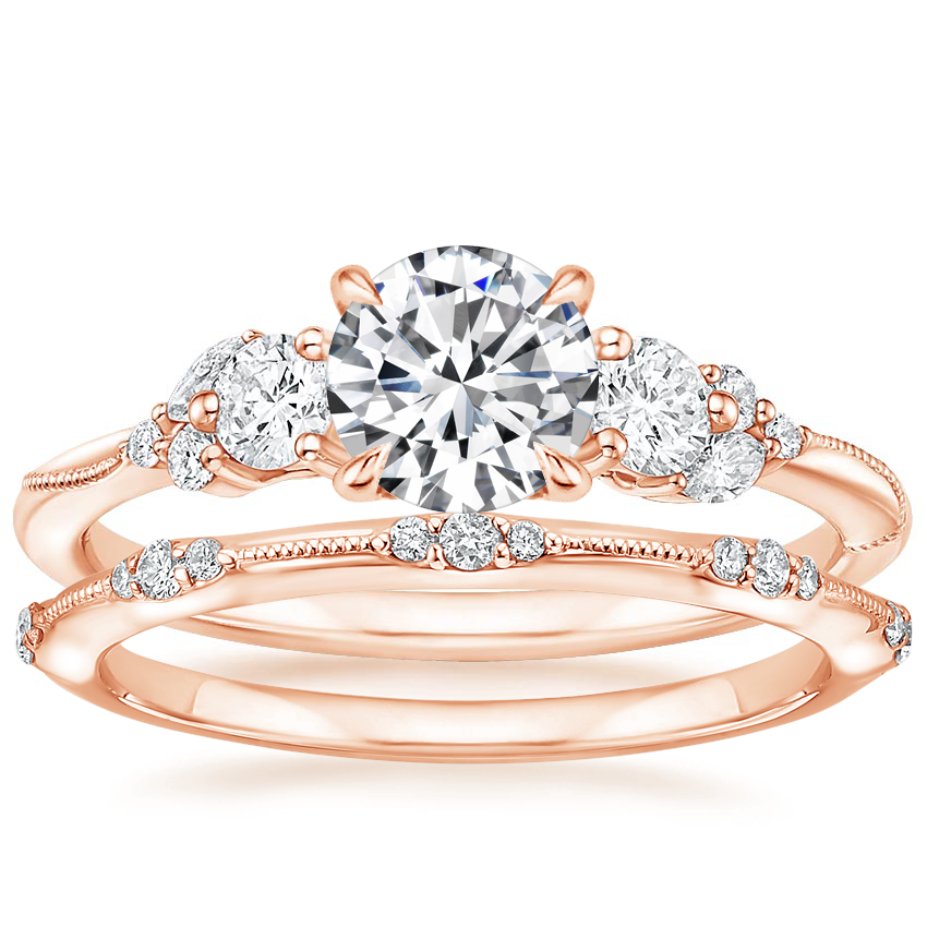 14K Rose Gold Camellia Three Stone Diamond Ring (1/3 ct. tw.) with Alena Diamond Ring