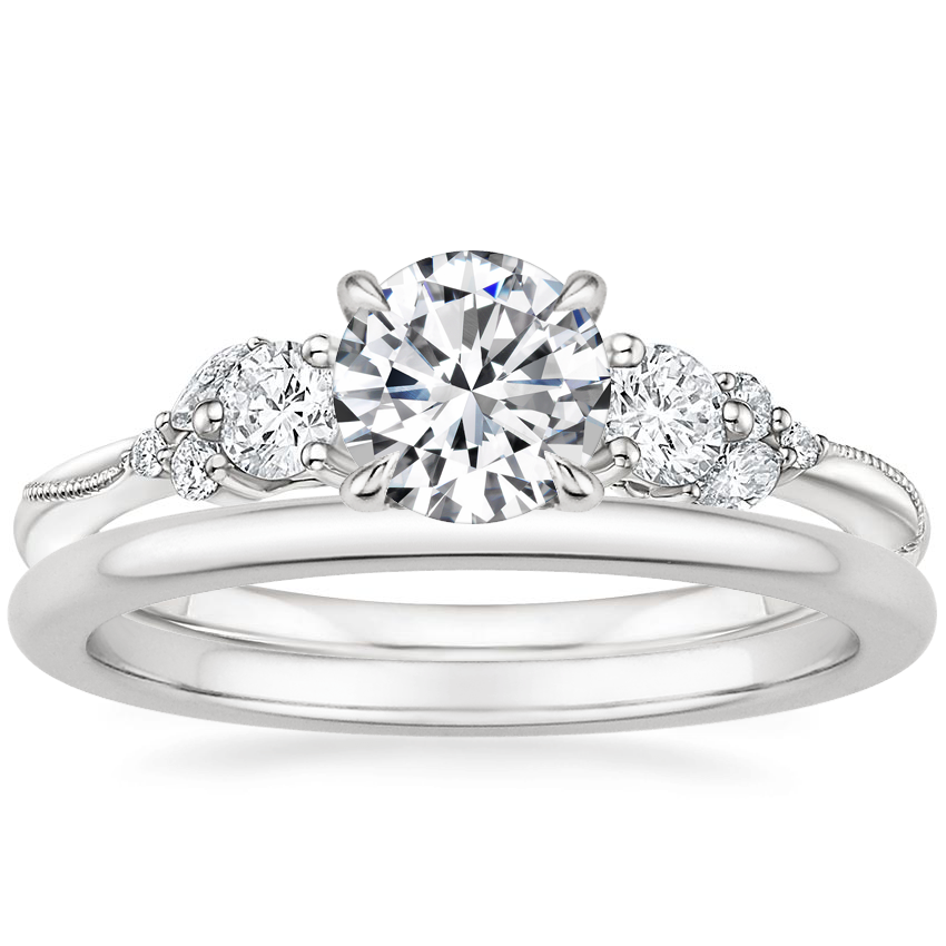 Platinum Camellia Three Stone Diamond Ring (1/3 ct. tw.) with Petite Comfort Fit Wedding Ring