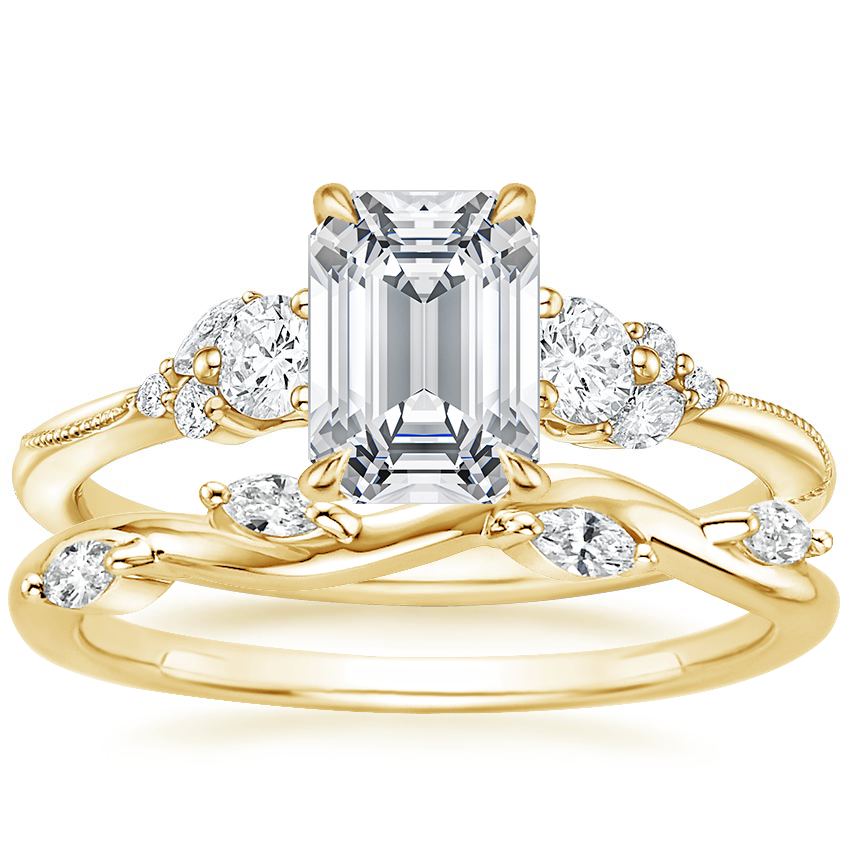 18K Yellow Gold Camellia Three Stone Diamond Ring (1/3 ct. tw.) with Winding Willow Diamond Ring
