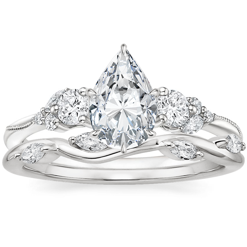 Platinum Camellia Three Stone Diamond Ring (1/3 ct. tw.) with Winding Willow Diamond Ring