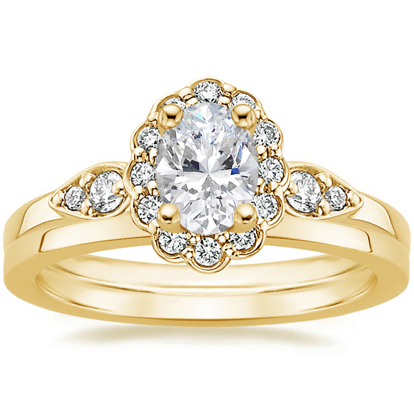 18K Yellow Gold Camillia Diamond Ring with Petite Quattro Wedding Ring