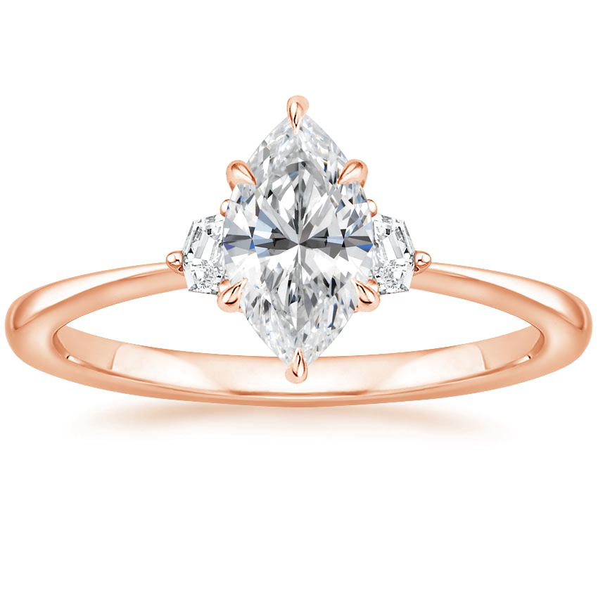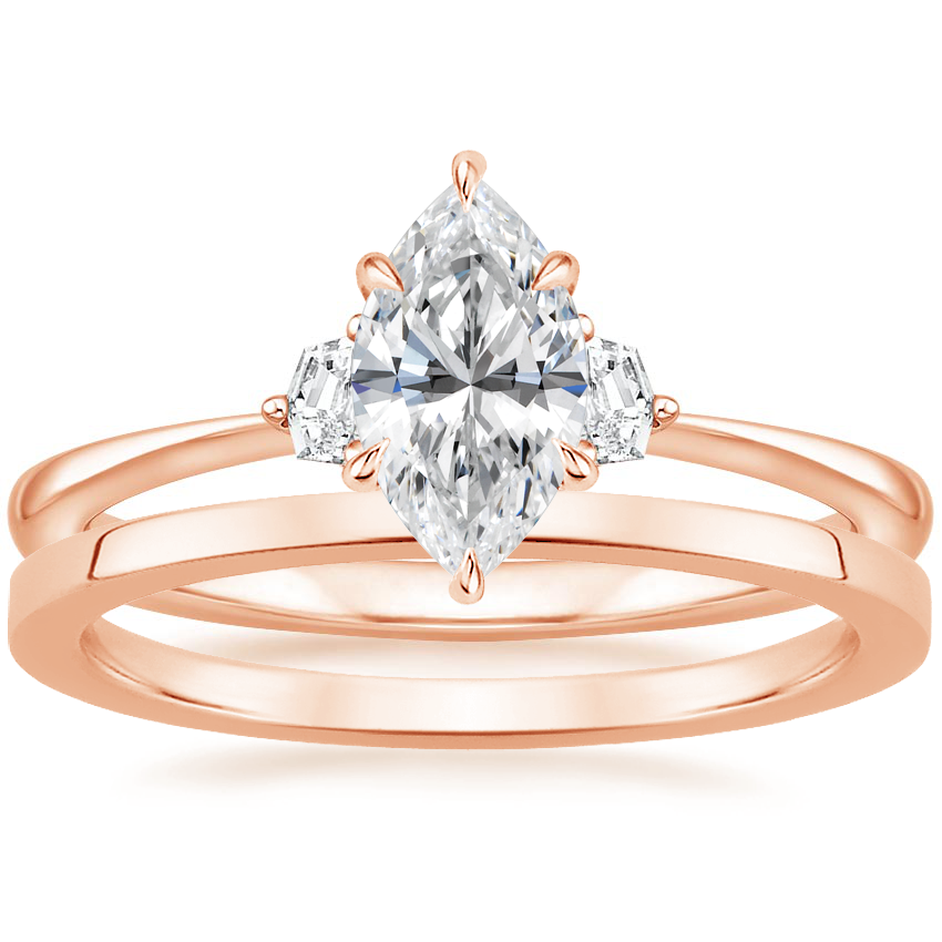 14K Rose Gold Cecily Diamond Ring with Petite Quattro Wedding Ring