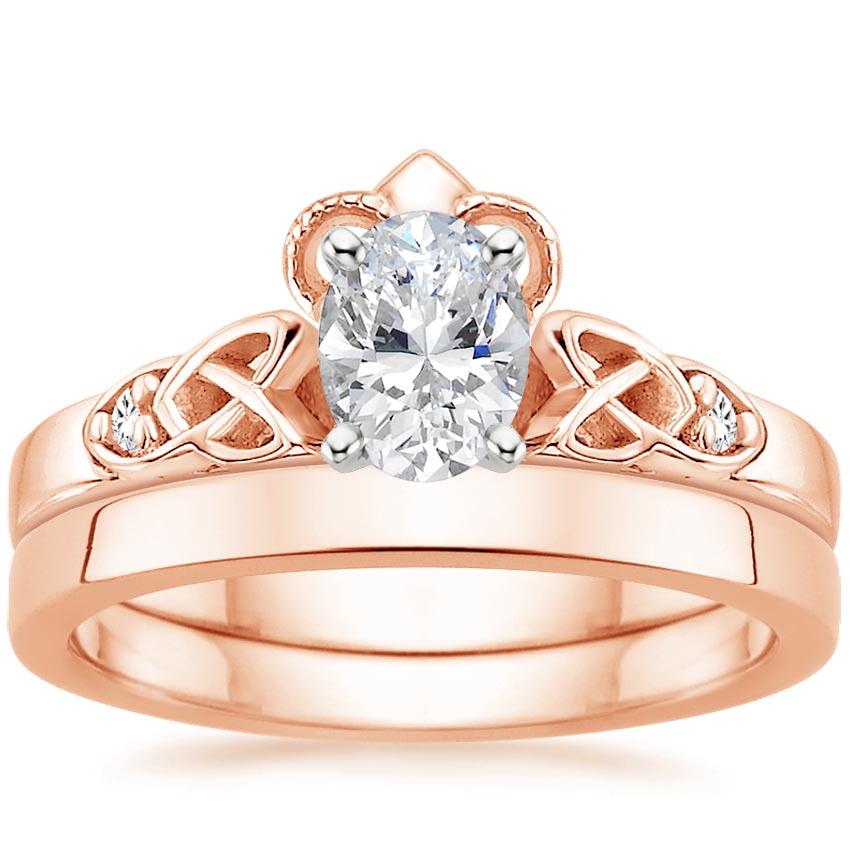 14K Rose Gold Celtic Claddagh Diamond Bridal Set