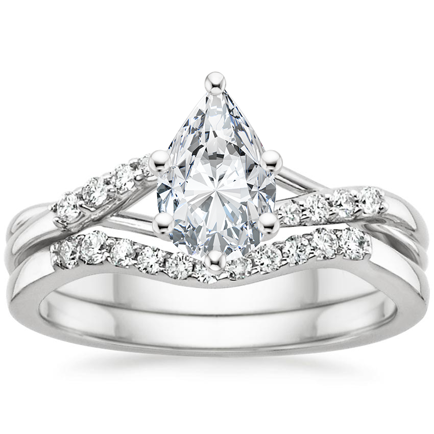 Ribbons of precious metal entwine to hold a brilliant center diamond aloft in this nature-inspired ring. Tapering diamond accents on the perfectly contoured wedding ring add shimmer (1/5 total carat weight). ... Read More