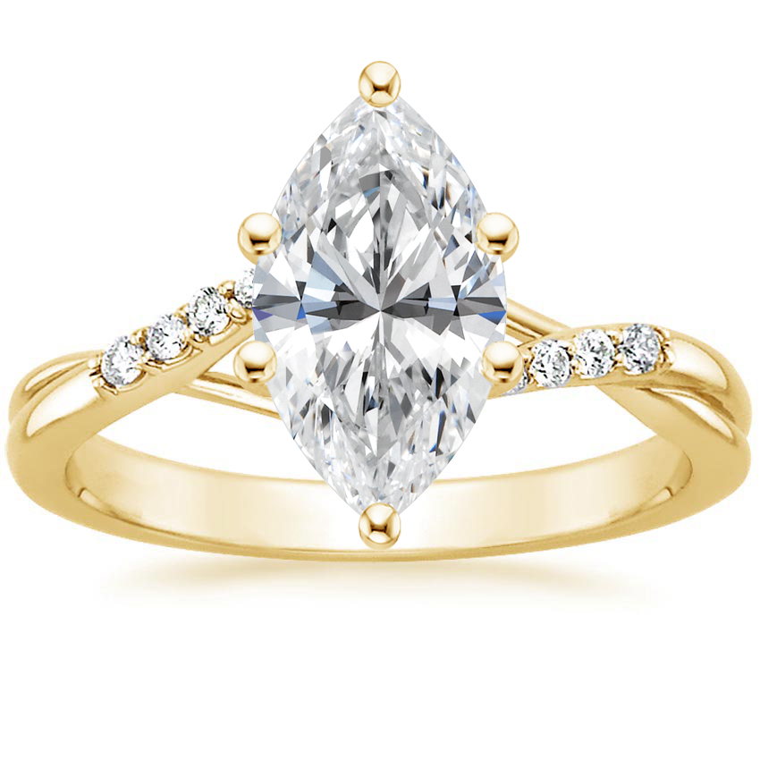 I love my engagement ring!! So far it has been great! I love the color and design of this setting. I think it looks really beautiful in a high setting and in the marquise cut! The setting makes it feel secure in my opinion. This is a 2 carat marquise lab grown diamond on the yellow gold chamise setting.