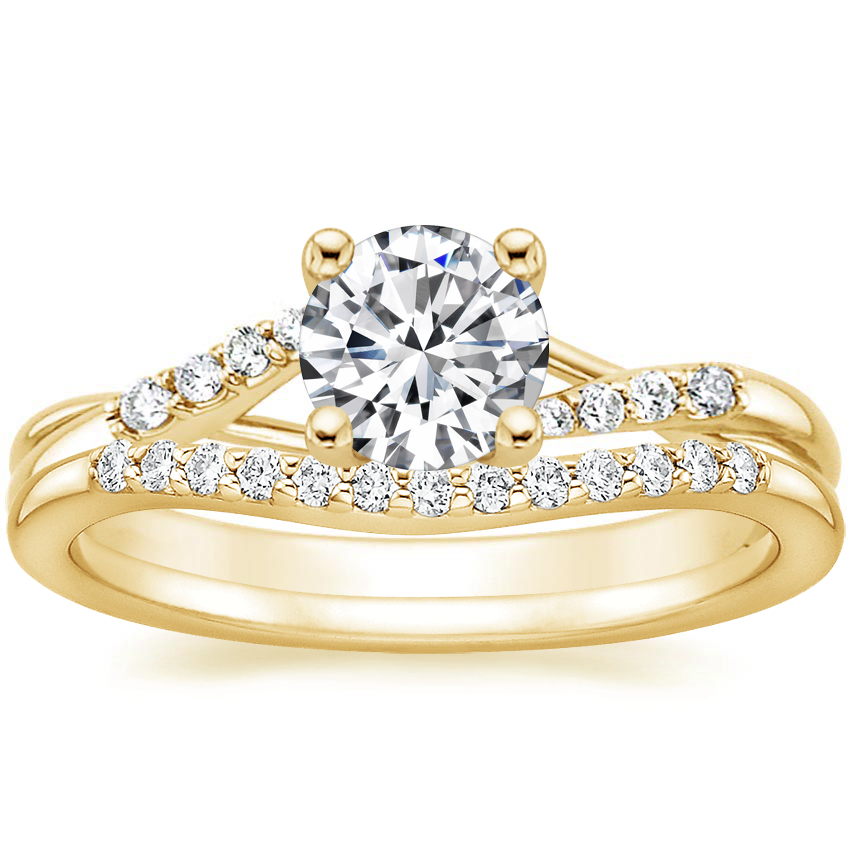 18K Yellow Gold Chamise Diamond Ring (1/15 ct. tw.) with Petite Curved Diamond Ring (1/10 ct. tw.) with 0.75 Carat Round Diamond