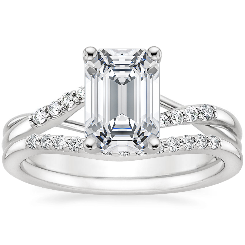 18K White Gold Chamise Diamond Ring (1/15 ct. tw.) with Petite Curved Diamond Ring (1/10 ct. tw.)