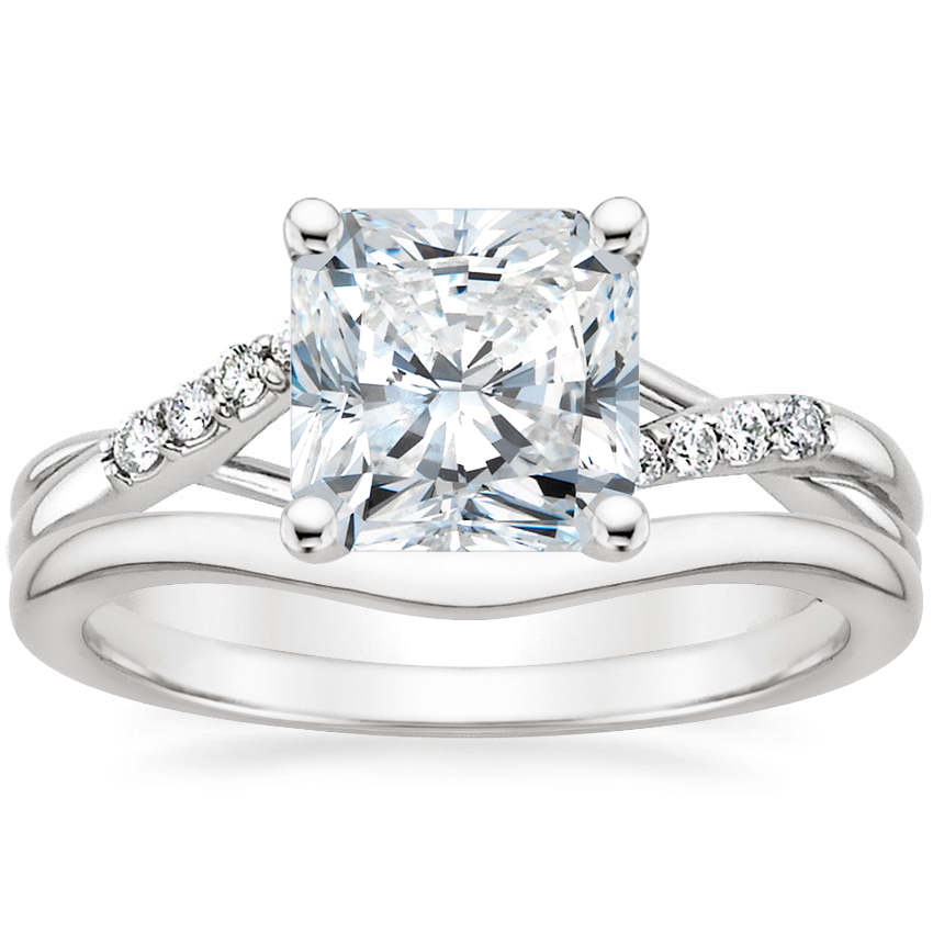 Platinum Chamise Diamond Ring (1/5 ct. tw.) with Petite Curved Wedding Ring