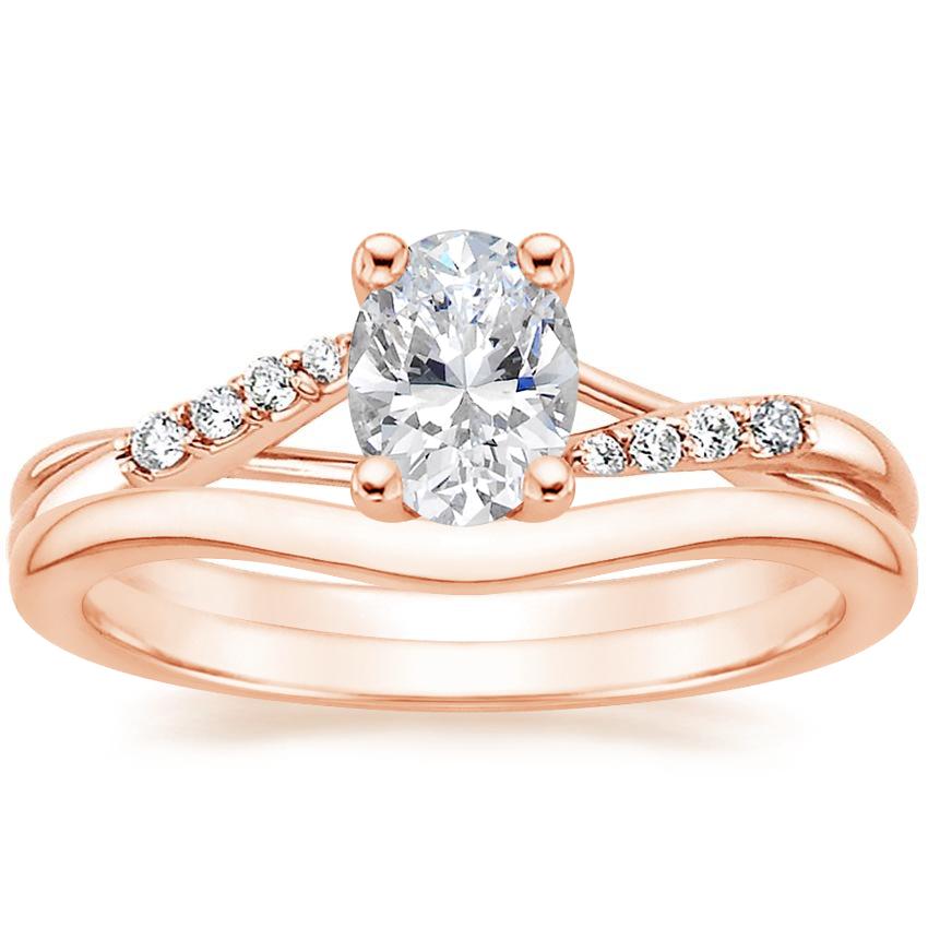 14K Rose Gold Chamise Diamond Ring (1/5 ct. tw.) with Petite Curved Wedding Ring