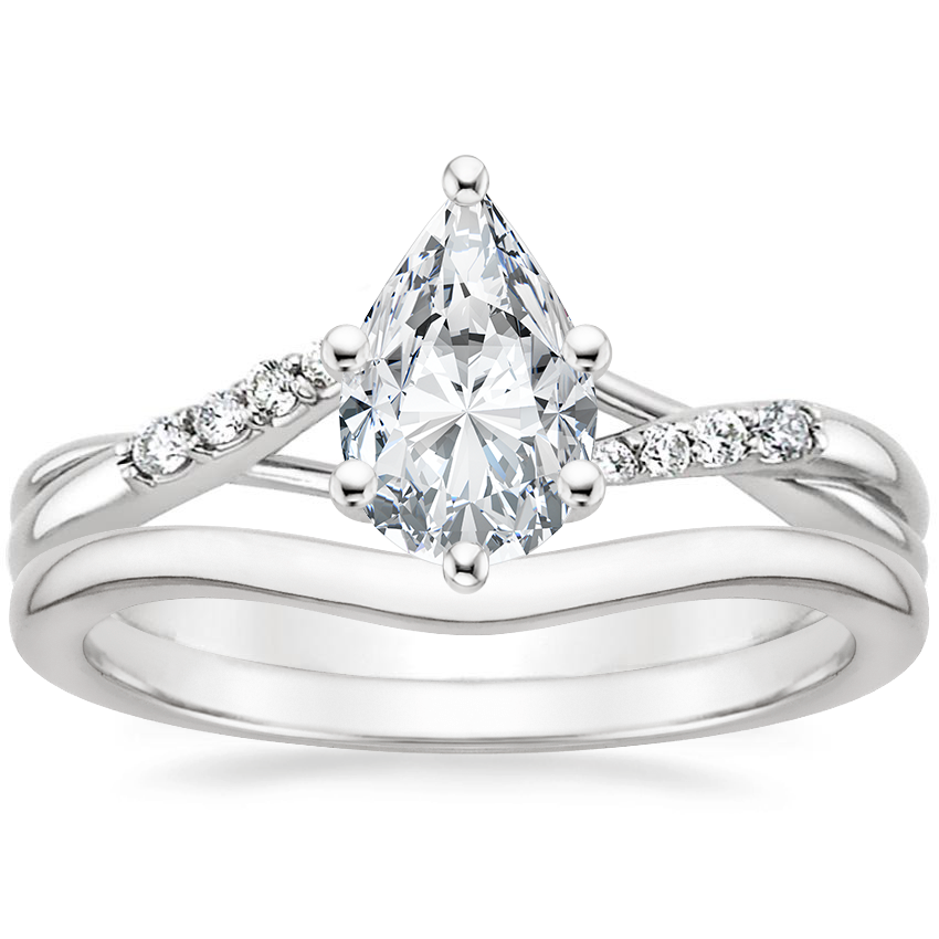18K White Gold Chamise Diamond Ring (1/5 ct. tw.) with Petite Curved Wedding Ring