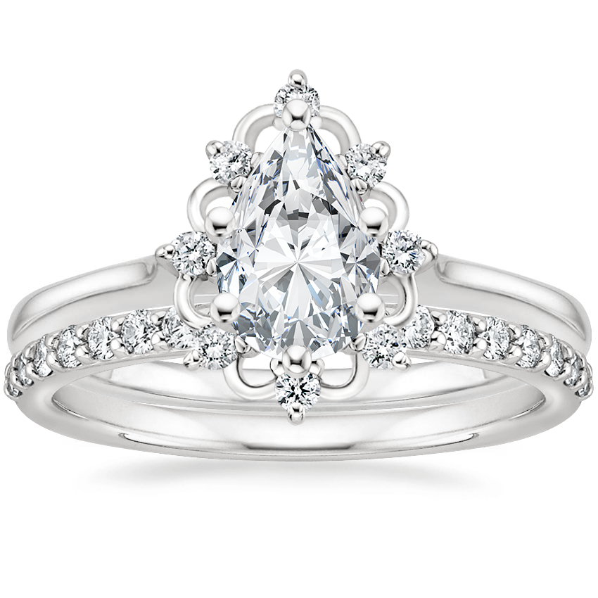 18K White Gold Chantilly Diamond Ring with Petite Shared Prong Diamond Ring (1/4 ct. tw.)