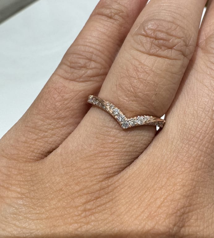 Originally bought this as a wedding band but then loved it also on its own! It's such a gorgeous design from EVERY SINGLE angle and glimmers in lots of different light settings. Brilliant Earth should keep the 1/4 ct. tw design since it has such a subtle "point" that makes it flow/move so well!