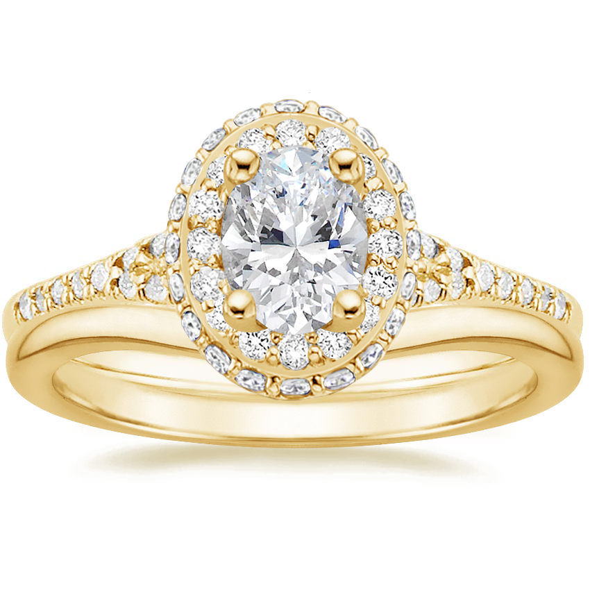 18K Yellow Gold Circa Diamond Ring (1/2 ct. tw.) with Petite Curved Wedding Ring