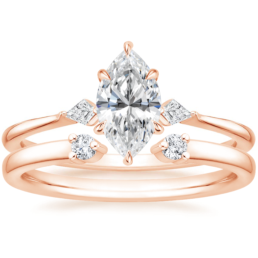 14K Rose Gold Cometa Lab Diamond Ring with Wren Diamond Open Ring with 0.75 Carat Marquise Lab Grown Diamond