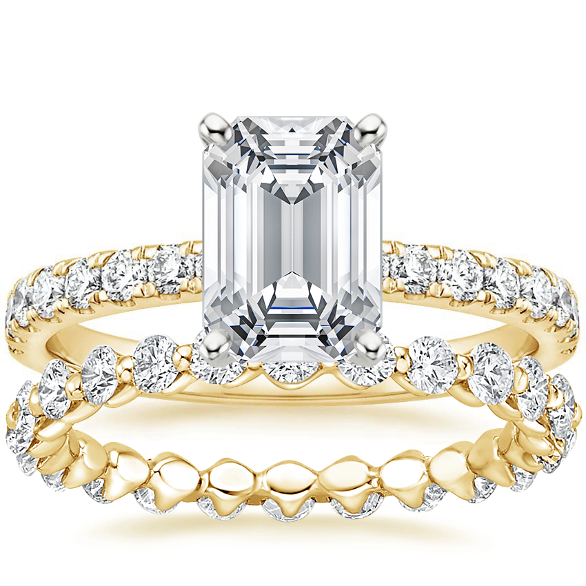 18K Yellow Gold Constance Diamond Ring (1/3 ct. tw.) with Riviera Eternity Diamond Ring (1 ct. tw.)