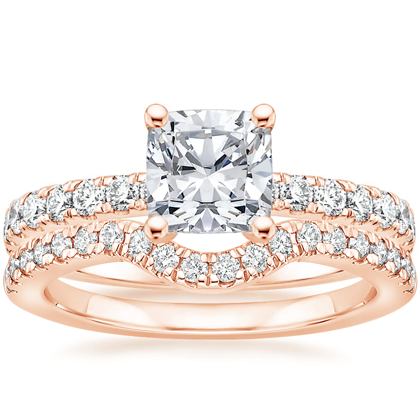 14K Rose Gold Constance Hidden Halo Diamond Ring (3/4 ct. tw.) with Bliss Contoured Diamond Ring (1/4 ct. tw.)