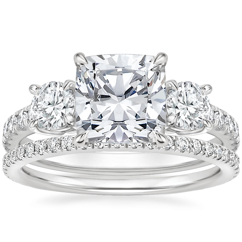 Platinum Constance Three Stone Diamond Ring (3/4 ct. tw.) with Luxe Ballad Diamond Ring (1/4 ct. tw.)