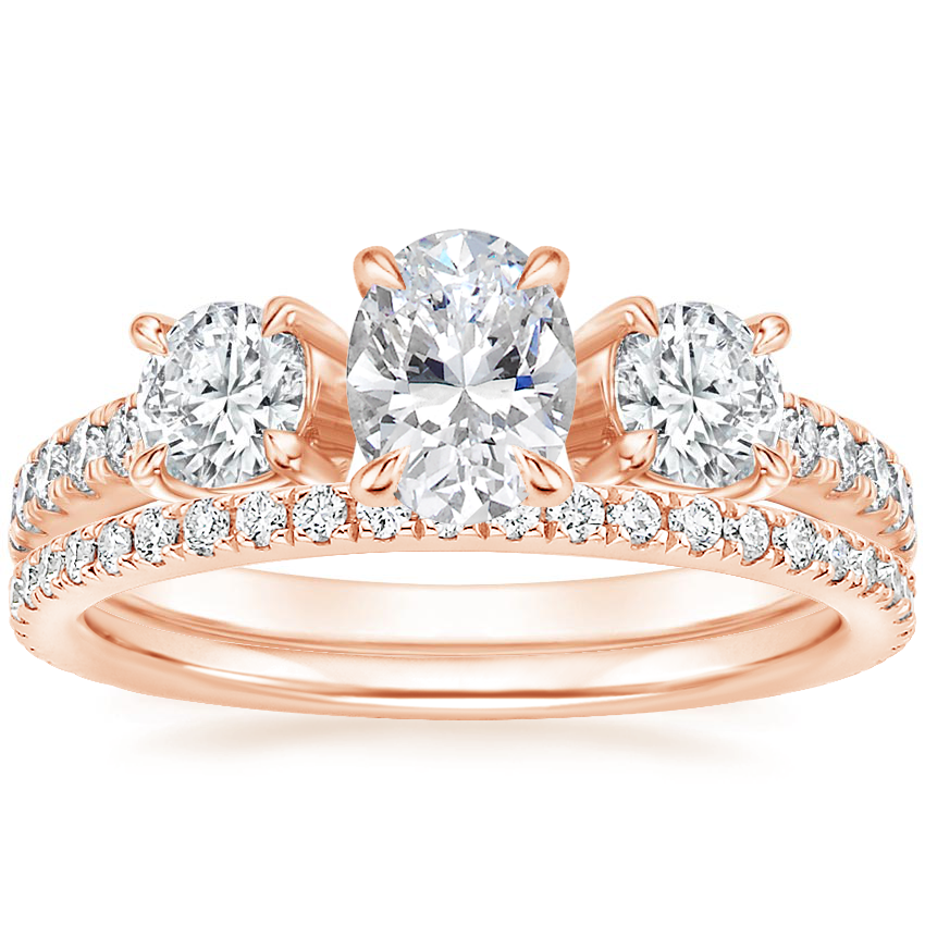 14K Rose Gold Constance Three Stone Diamond Ring (3/4 ct. tw.) with Luxe Ballad Diamond Ring (1/4 ct. tw.)