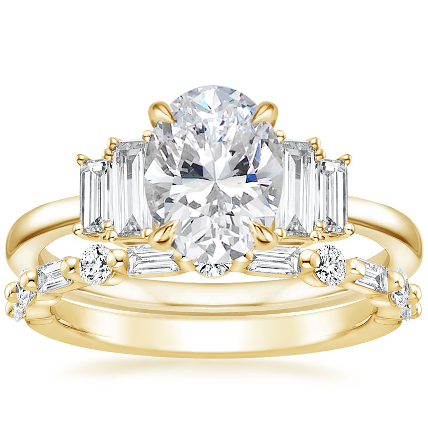 Coppia Five Stone Diamond Ring (1/3 ct. tw.) with Harper Diamond Ring (1/3 ct. tw.) in 18K Yellow Gold
