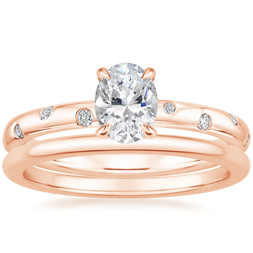 14K Rose Gold Corinne Diamond Ring with Petite Comfort Fit Wedding Ring
