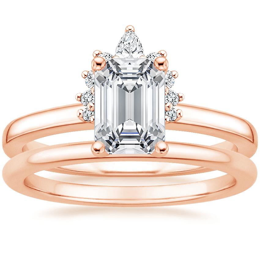 14K Rose Gold Crescent Diamond Ring with Petite Comfort Fit Wedding Ring