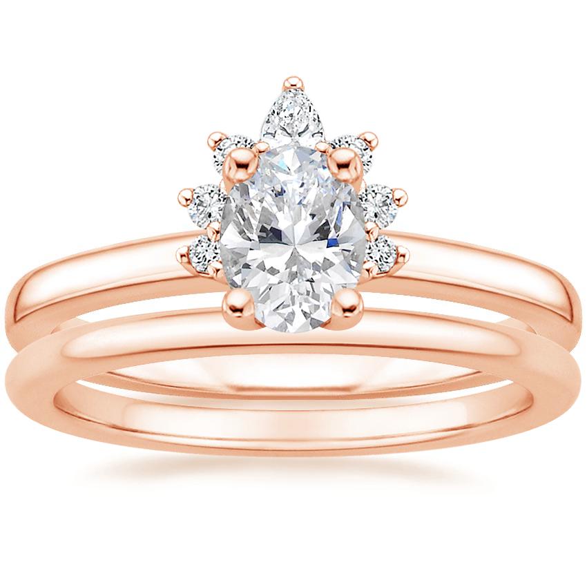14K Rose Gold Crescent Diamond Ring with Petite Comfort Fit Wedding Ring