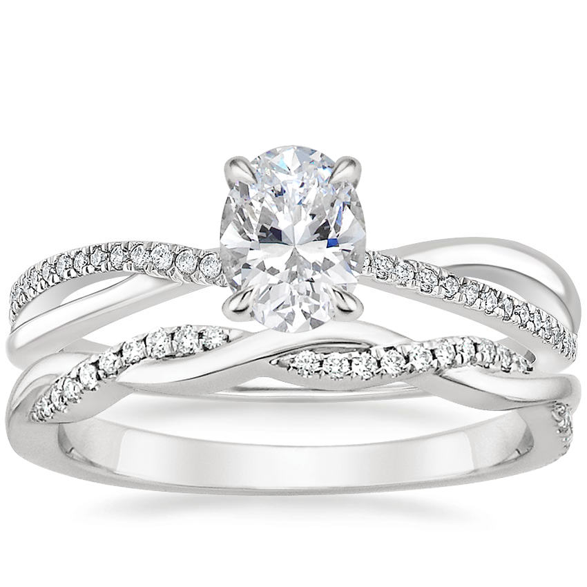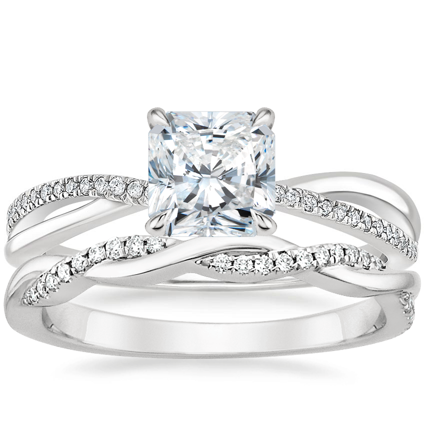 Platinum Crossover Diamond Ring with Petite Twisted Vine Diamond Ring (1/8 ct. tw.)