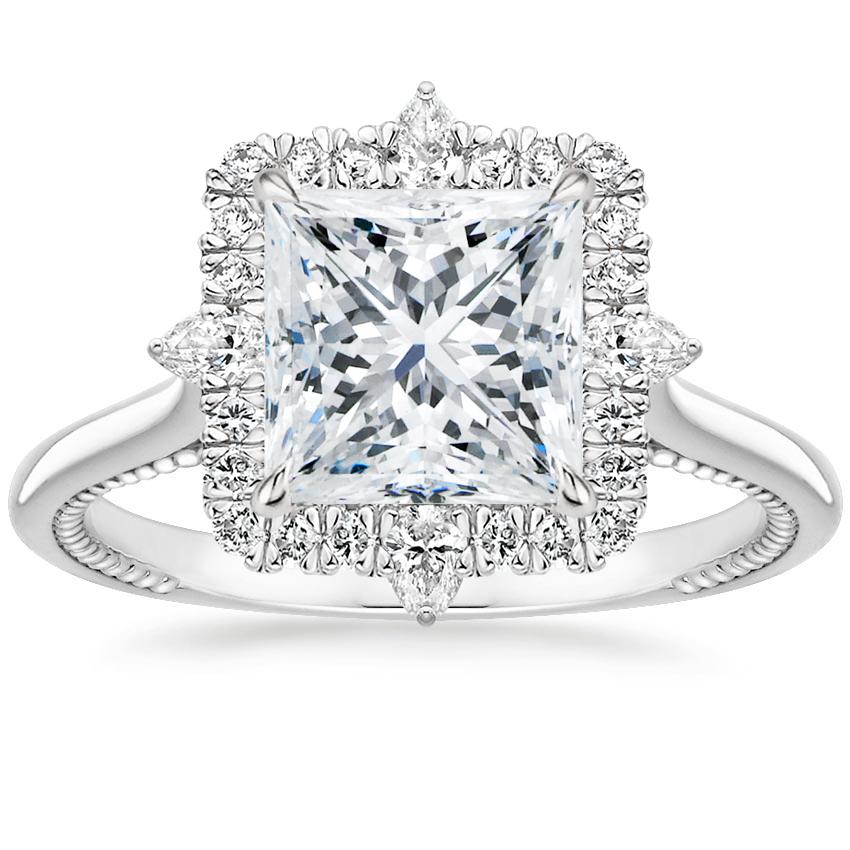 18K White Gold Dahlia Halo Diamond Ring (1/3 ct. tw.) with Chevron Ring