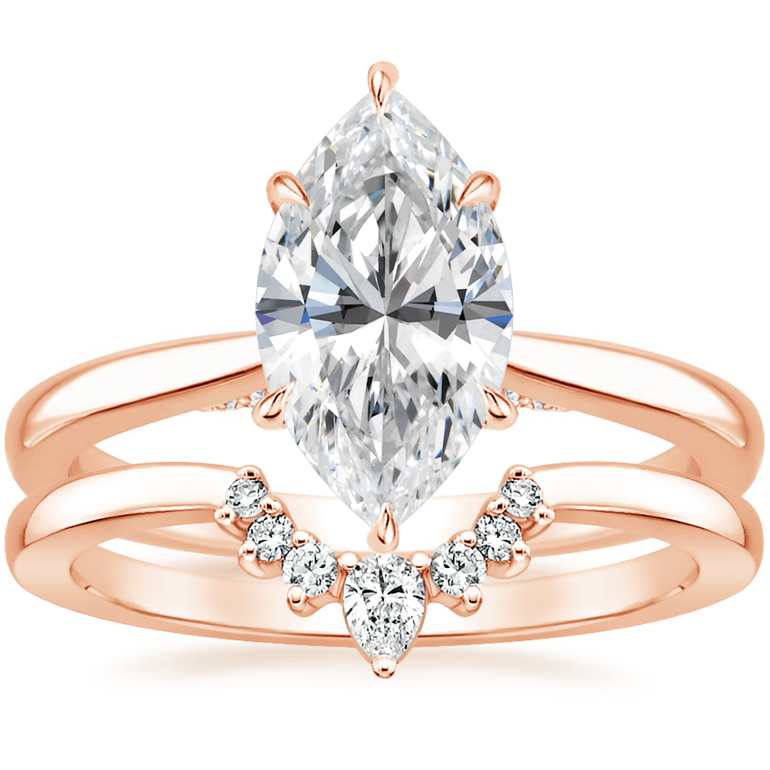 14K Rose Gold Dawn Lab Diamond Ring with Lunette Diamond Ring with 4.05 Carat Marquise Lab Grown Diamond