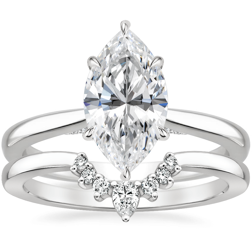 18K White Gold Dawn Lab Diamond Ring with Lunette Diamond Ring with 4.05 Carat Marquise Lab Grown Diamond